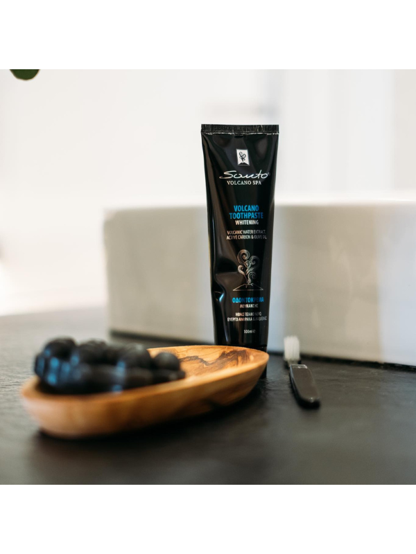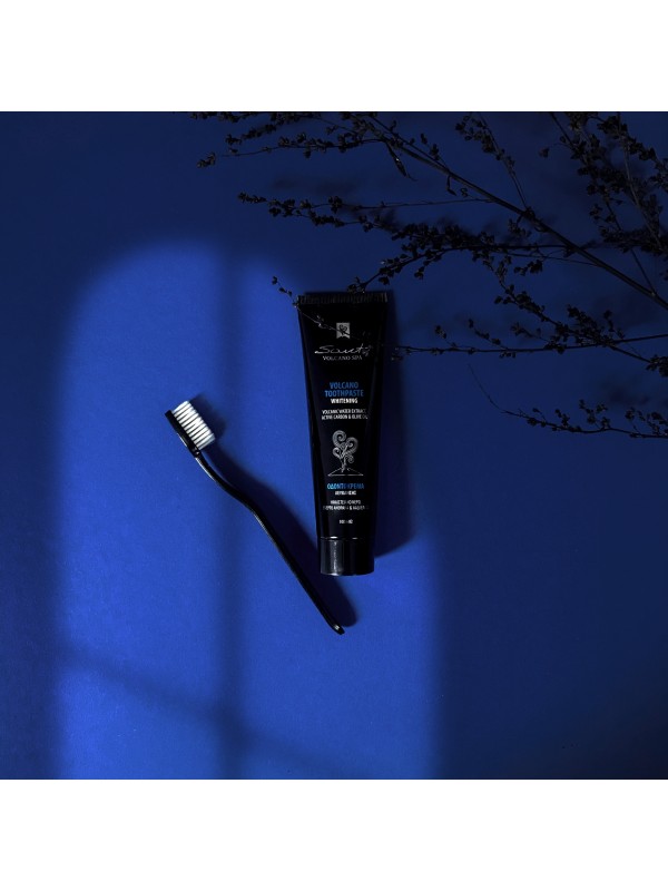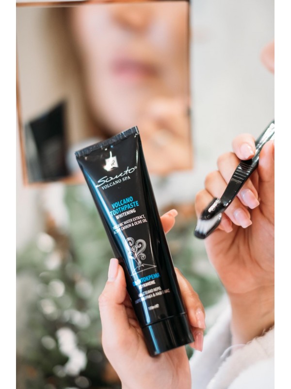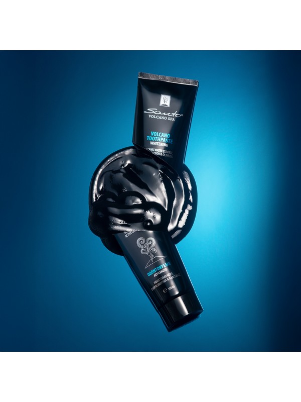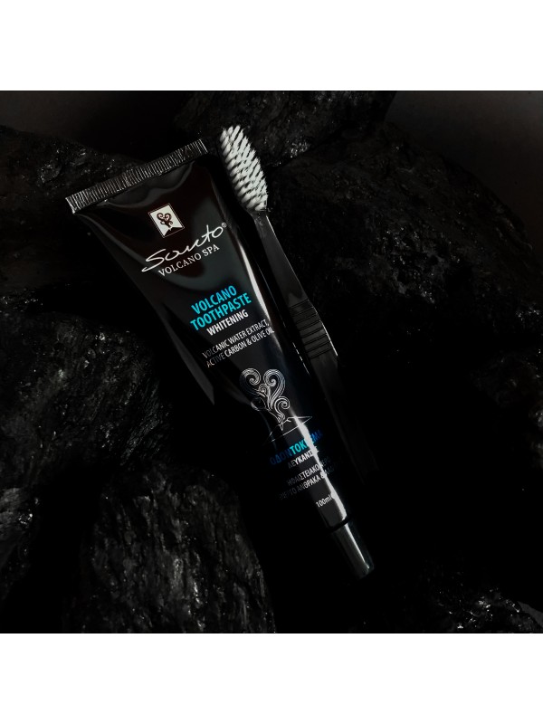 Postaw na naturę, skuteczność i świeżość z Santo Volcano SPA. Wybielająca pasta z wodą wulkaniczną to Twój codzienny rytuał pięknego uśmiechu i zdrowych zębów – teraz z elegancką szczoteczką gratis!