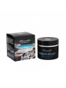 Woda wulkaniczna pochodząca z greckiej wyspy Santorini jest bogata w magnez, wapń, potas oraz krzemionkę. Wspomaga regenerację skóry, wzmacnia barierę ochronną i intensywnie ją odświeża. Piasek wulkaniczny delikatnie złuszcza martwy naskórek, poprawia mikrokrążenie i wspomaga detoksykację skóry. Perlit zwiększa skuteczność złuszczania oraz ułatwia wchłanianie składników odżywczych. D-Pantenol przyspiesza regenerację skóry, łagodzi podrażnienia i działa kojąco, nawet po mocniejszym ścieraniu naskórka. Oliwa z oliwek nawilża, chroni przed utratą wody oraz łagodzi podrażnienia. Aloes wspomaga odnowę i koi skórę, a olej jojoba dostarcza naturalnych lipidów i wspiera procesy regeneracyjne. Sepitonic™ M3, czyli połączenie magnezu, miedzi i cynku, dotlenia skórę, poprawia jej jędrność i odżywienie.