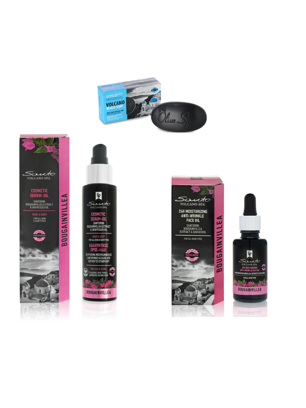 Podaruj luksus prosto z Grecji! Bougainvillea Zestaw kosmetyków Santo Volcano Spa to wyjątkowy komplet kosmetyków do twarzy i ciała, który zachwyci każdą kobietę i mężczyznę. Produkty stworzone na bazie wody wulkanicznej, oliwy z oliwek i rośliny Bougainvillea zapewniają skórze dogłębne nawilżenie, regenerację i młodszy wygląd.