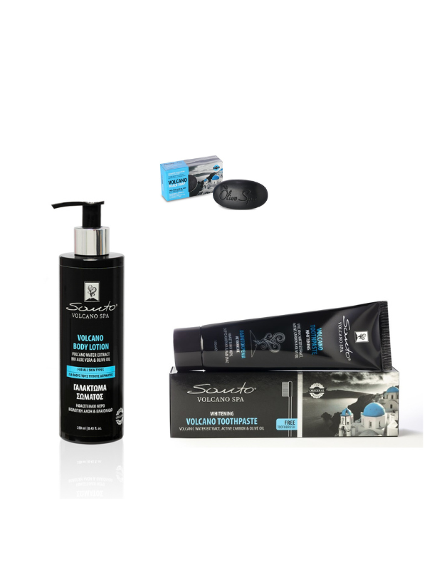 Zestaw Santo Volcano Spa to połączenie pielęgnacji ciała i higieny jamy ustnej w jednym eleganckim pakiecie. Balsam zapewnia miękką i odżywioną skórę, a pasta do zębów – zdrowy i świeży uśmiech. Doskonały na urodziny, święta, rocznicę lub Dzień Kobiet i Mężczyzn.